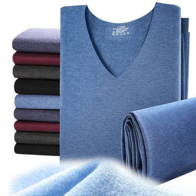 恒温37℃自发热男士秋冬保暖内衣套装薄绒秋衣裤加绒v领无痕